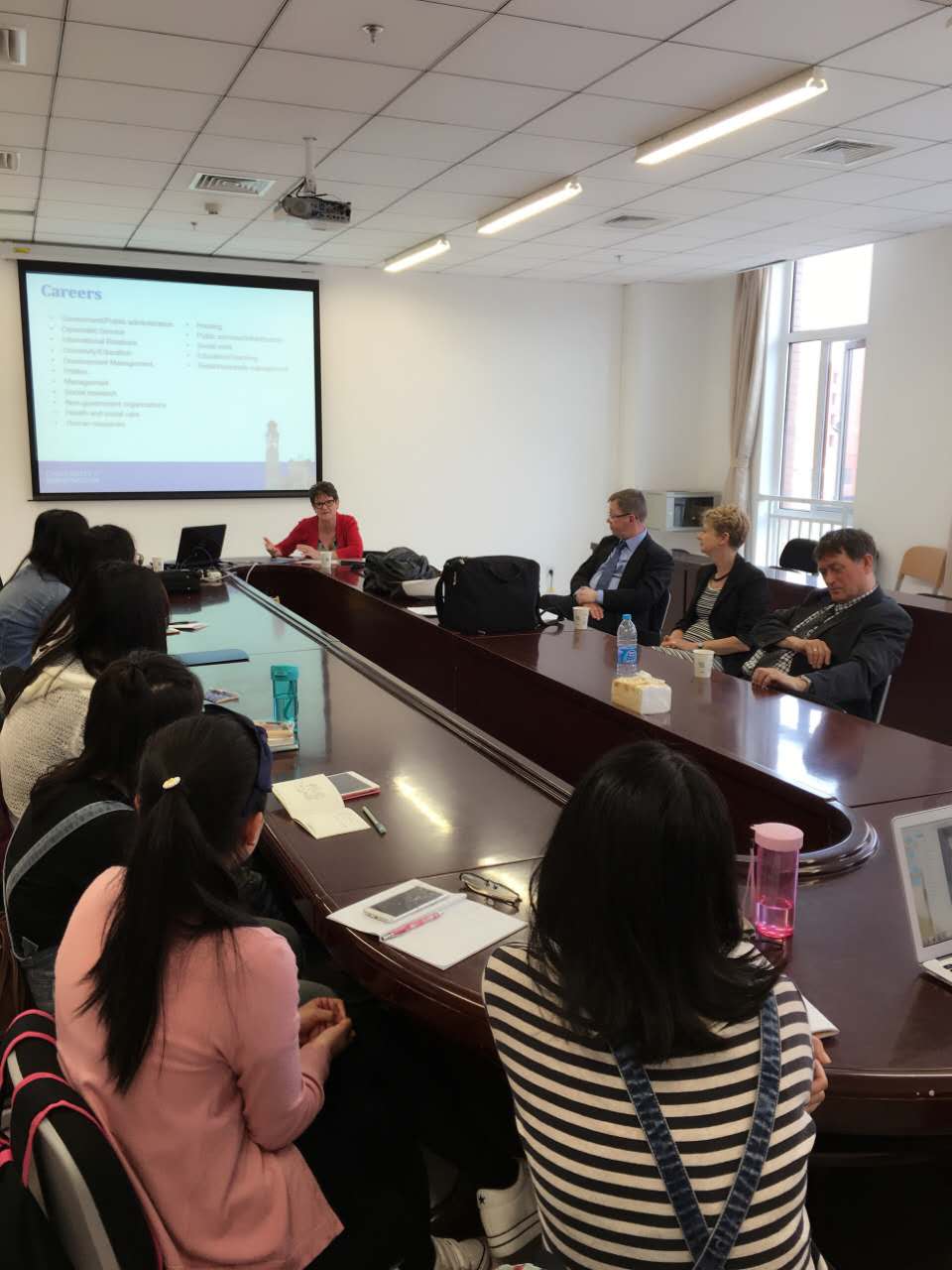 随后,伯明翰大学教授在我校周恩来政府管理学院举行2016年度英国伯明翰大学硕士联合培养项目宣讲会。伯明翰教授就伯明翰大学介绍、项目概况、录取要求、申请流程等情况进行详细说明,并与学生互动答疑,场面活跃、热烈。