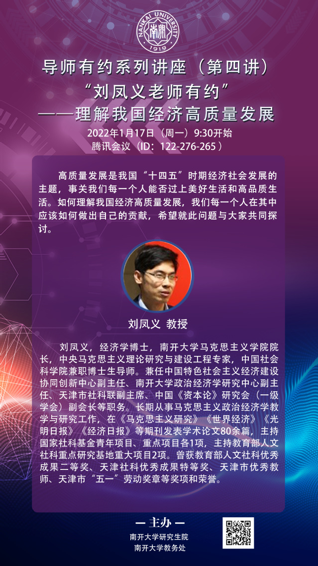 导师有约系列讲座(四)——刘凤义老师有约——理解我国经济高质量发展