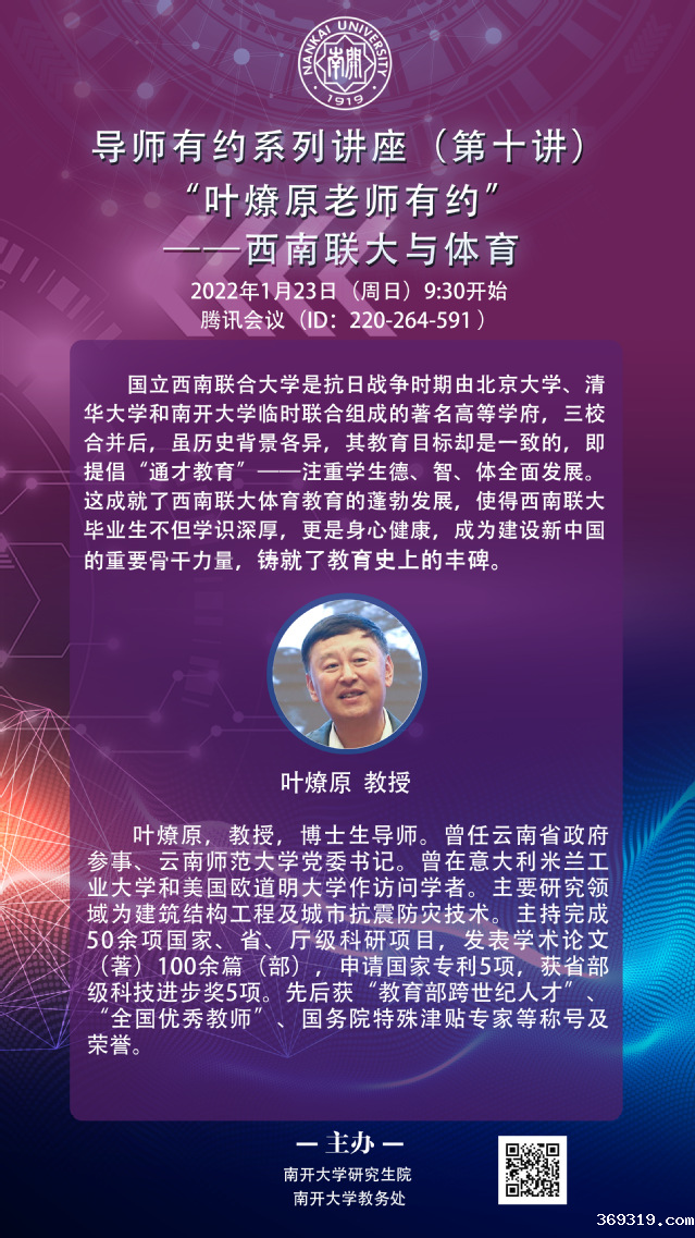 导师有约系列讲座(十)——叶燎原老师有约——西南联大与体育