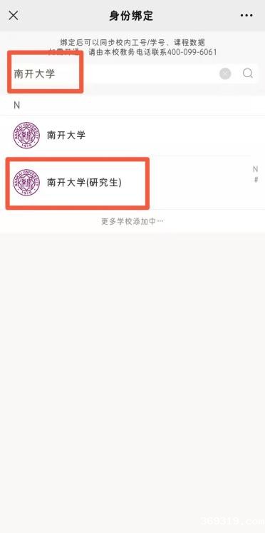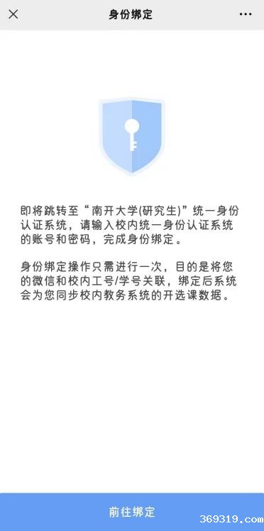 第一步:绑定身份。手机微信进入长江雨课堂公众号-更多-身份绑定,搜索“南开大学”,选择“南开大学(研究生)”进行身份绑定(使用校内统一身份认证系统的账号和密码)。必须完成身份绑定后,方可进入课堂收听培训。