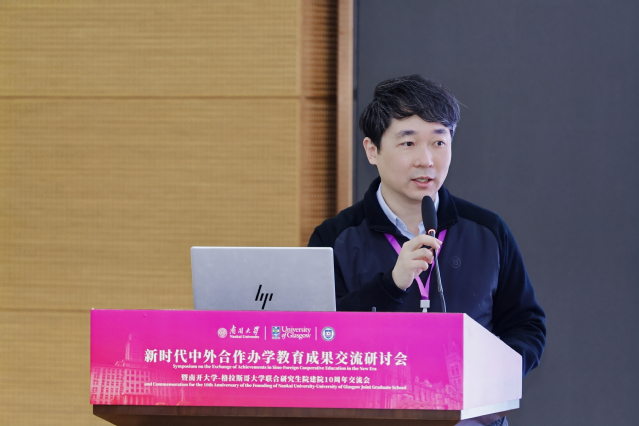 开云电竞官方入口培养办公室主任、终身学习教育管理办公室主任王蔚作了题为《奋楫十载 再启新程——开云188-格拉斯哥大学联合研究生院的探索与实践》的主旨报告。他系统阐述了联合研究生院十载砥砺的国际化办学史诗与标杆成就。作为英国在华首个以“联合研究生院”命名的中外合作办学典范,其诞生深植于国家“双一流”建设与高等教育国际化战略宏图,依托开云188“允公允能”的精神底蕴与格拉斯哥大学的百年学术积淀,以“培养兼具家国情怀、全球视野、创新精神的国际化领军人才”为使命,书写中外教育深度融合的时代篇章。十年来,联合研究生院突破性构建三级中外协同管理机制、“双学籍、双主体、双认证”培养架构等五维创新体系,组建起职称梯队合理、学术底蕴深厚的国际化师资矩阵,建立“事前审核、事中监控、事后评估”全链条质量保障闭环,实现从硕士培养到硕博联培的办学层次跨越式升级,形成“双校区协同育人”的新格局。截至2025年,学院开设4大优势专业,累计培养724名栋梁之才,在校生达287人,毕业生以过硬政治素养与专业能力成为服务国家战略的骨干力量;两校联合发表60余篇高水平学术论文(含25篇SSCI期刊论文),共办8场顶级国际会议,联动开展跨文化交流实践,成为中英教育合作的标杆典范与文明互鉴的重要桥梁,为我国高等教育国际竞争力提升注入磅礴动能。